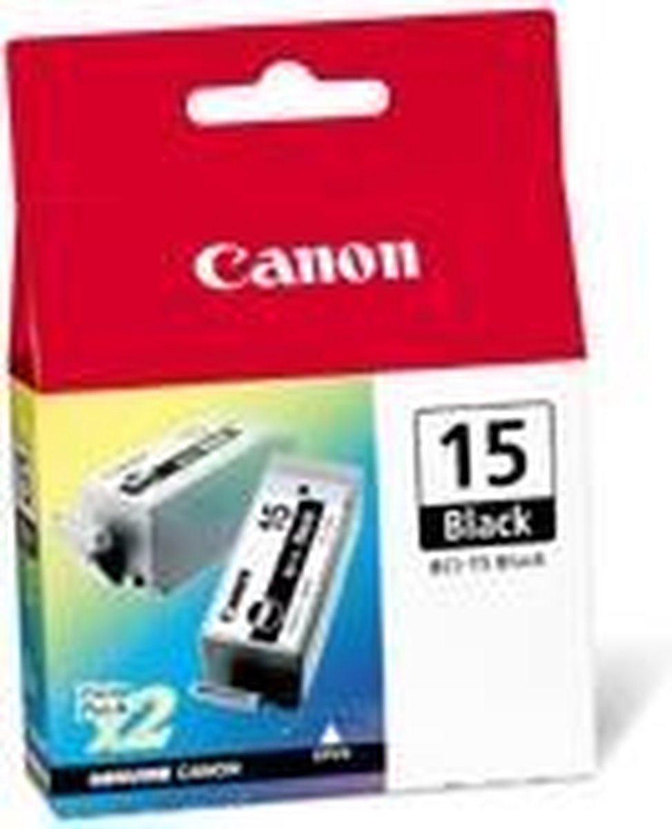 Canon 8190A002|BCI-15 BK inktpatroon zwart dubbelpak, 80 zijden/5%, inhoud 5,3 ml, VE=2 voor I 70/80/Pixma IP 90/90 V/Pixus IP 90/50 I/80 I