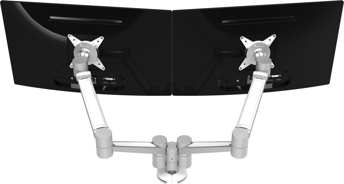 Voor het bevestigen van twee monitors of apparaten, onafhankelijk van elkaar aan te passen in de diepte en dynamisch in de hoogte. Hierdoor zijn verschillende monitors en apparaten eenvoudig uit te lijnen en kan elke gebruiker zijn eigen optimale ergonomische positie vinden.