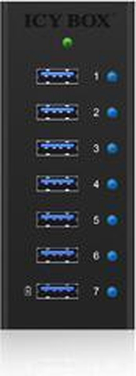 ICY BOX IB-AC618, 7 Port USB 3.2 Gen 1 Hub mit 1x Tablettladeport, mit 12V 3A Netzteil 70418 USB-hub 7 poorten USB-A US