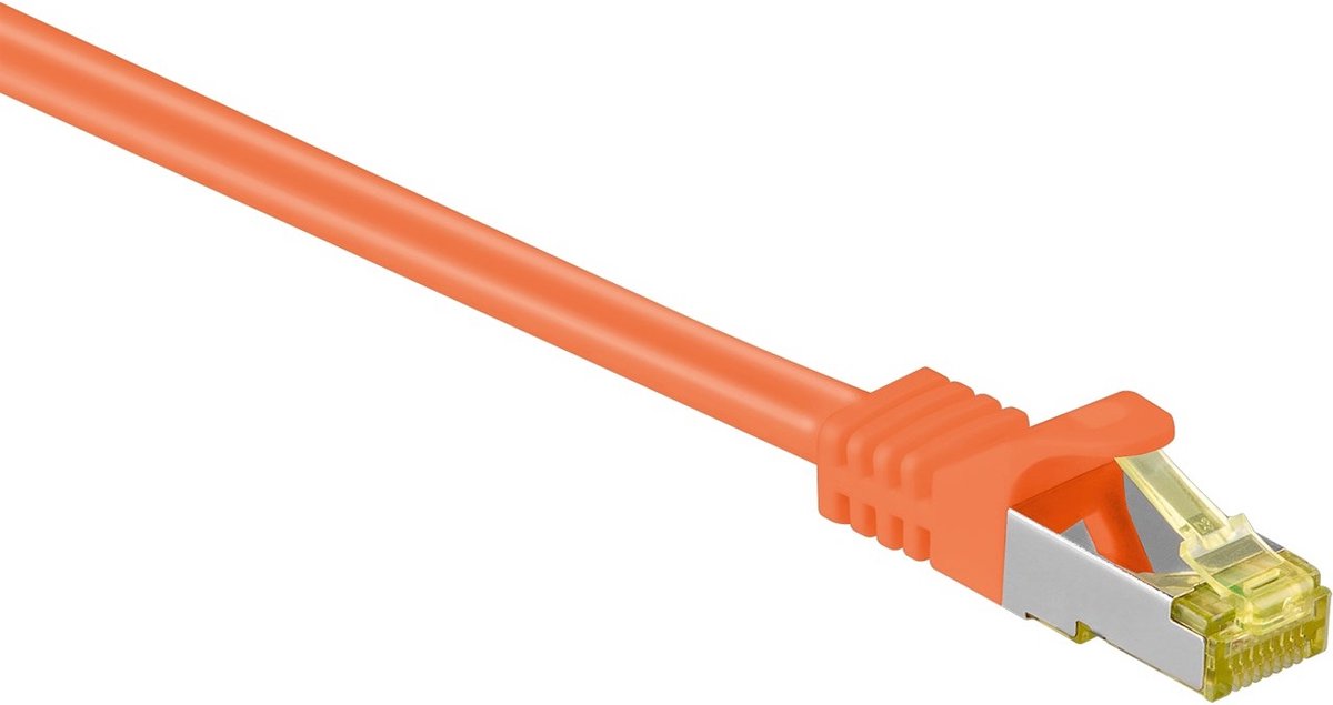 S/FTP CAT7 10 Gigabit netwerkkabel / oranje - LSZHDeze dubbel afgeschermde S/FTP CAT7 Gigabit netwerkkabel kunt u gebruiken om een computer, notebook, switch of ander apparaat te verbinden met een modem of router. De kabel is voorzien van een snagless plug en de volkoperen getwiste aders zijn 'recht' aangesloten (straight). De mantel is halogeenvrij (LSZH).Kenmerken: