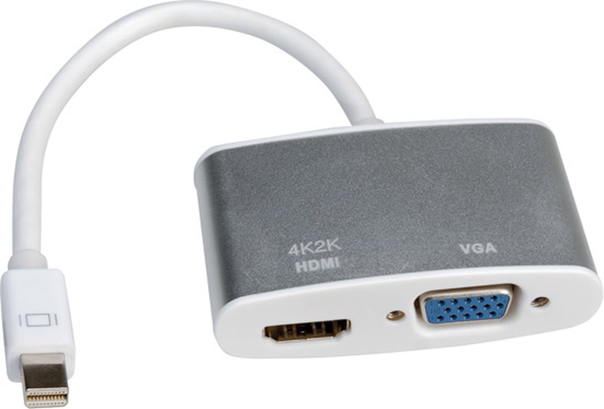 Geschikt om uw systeem uit te breiden met 1 monitorMet deze adapter heeft u de mogelijkheid om 1 monitor aan te sluiten, u kunt niet tegelijkertijd een HDMI, DVI en/of DisplayPort monitor aan sluiten. Wel heeft u met deze adapter de meestvoorkomende video-aansluitingen voorhanden. Vooral wanneer u met uw notebook veel verschillende werkplekken bezoekt, is het handig om deze adapter in uw notebooktas te bewaren. Zo kunt u uw notebook overal en altijd aansluiten.Compatibel met Apple MacBookDeze kabel kunt u gebruiken om uw Apple MacBook te verbinden met een tweede scherm. Uw MacBook dient te beschikken over een Mini DisplayPort uitgang of een Thunderbolt uitgang. De volgende MacBook modellen beschikken over een Mini DisplayPort of Thunderbolt uitgang: