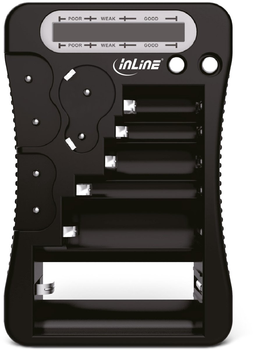 Met de InLine® universele batterijtester kunt u de laadstatus van alle in de handel verkrijgbare batterijen en oplaadbare batterijen controleren. Er kunnen meer dan 12 verschillende batterijtypen worden getest. Nadat u de batterij in de juiste sleuf hebt geplaatst, wordt de status van de capaciteit weergegeven op het praktische LCD-scherm.