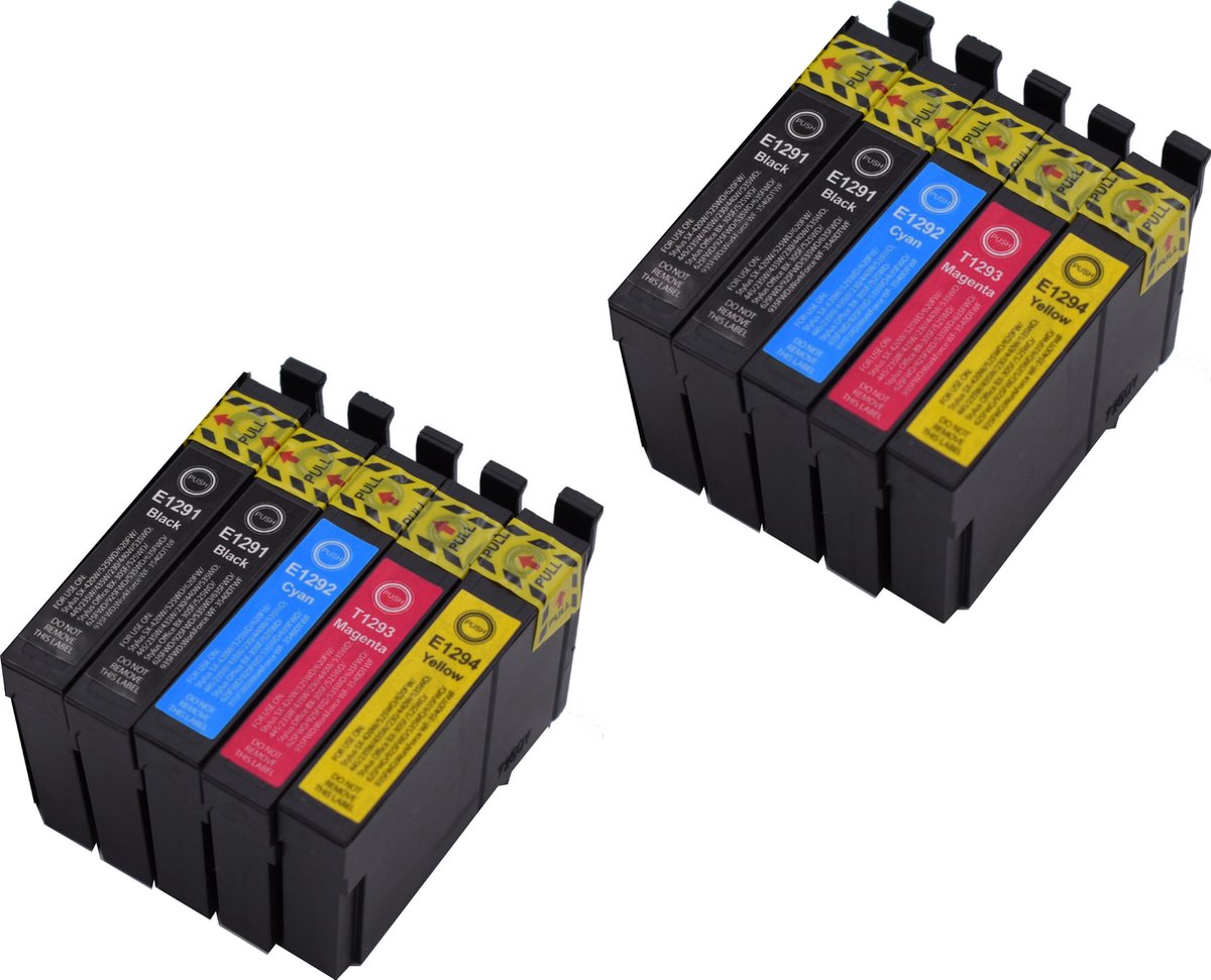 KATRIZ® huismerk ink Epson 4x T1291 Zwart + 2x T1292 Cyaan + 2x T1293 Magenta + 2x T1294 Geel | 10 stuks