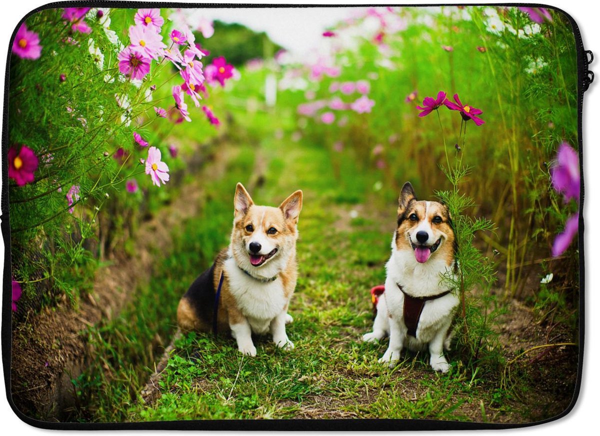 Laptophoes - Corgi's tussen de bloemen - Laptopsleeve