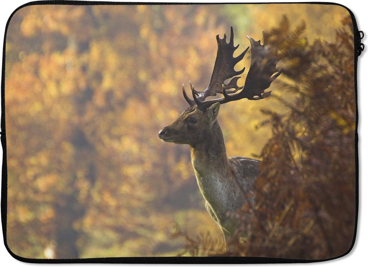 Laptophoes 14 inch - Hert - Gewei - Herfst - Laptop sleeve - Binnenmaat 33x23 cm - Zwarte achterkant