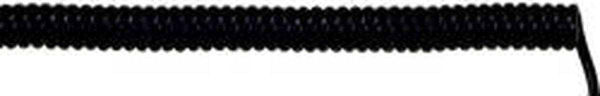 Spiraalkabel UNITRONIC® spiraal Technische spec.: Aantal aders (deel 1): 3 x · Ader-ID-code: DIN 47100 · Afgeschermd: Ja · Bedrijfspiekspanning: (Niet voor krachtstroomdoeleinden) 250 V · Buitendiameter: 19 mm · Doorsnede (per ader) (deel 1): 0.25 mm² · Halogeenvrij: Nee · Isolatiemateriaal: PUR · Kabeltype: UNITRONIC® SPIRAL · Kenmerken kabel: Oliebestendig, Zeer flexibel, PUR-mantel, Afscherming totaal · Kleur (specifiek): Zwart · Nominale spanning: 250 V · Normen/keurmerken: 1200 V · Opbouw geleider: Zeer fijndradig conform VDE 0295, klasse 6 / IEC 60228 Cl. 6 · Spiraallengte (max.): 800 mm · Spiraallengte (min.): 200 mm · Temperatuurbereik, variabel (max.): +50 °C · Temperatuurbereik, variabel (min.): -5 °C