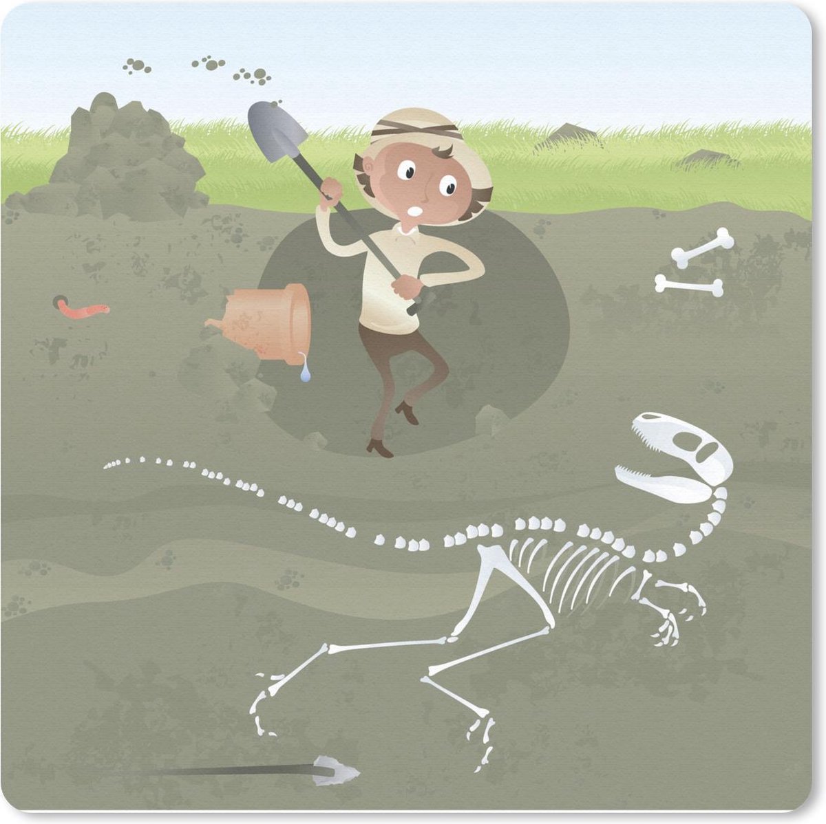 Een illustratie van een archeoloog die de beenderen van een dinosaurus opgraaft. De beenderen zijn goed bewaard gebleven en zullen niet misstaan in het museum. Deze muismat is bijvoorbeeld ideaal voor het upgraden van je werkomgeving!