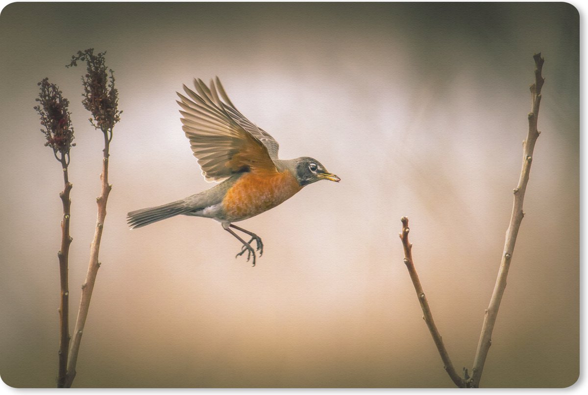 Bureau onderlegger 60x40 cm - Muismat Roodborstje - Vleugels - Natuur - Bureaulegger xl - Desk mat beschermer - Computer muismatten