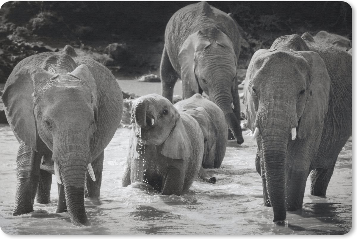 Bureau onderlegger 60x40 cm - Muismat Olifant - Dieren - Water - Zwart wit - Bureaulegger xl - Desk mat beschermer - Computer muismatten