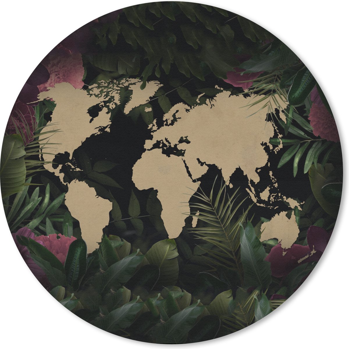 Muismat rond 20x20 cm - Mousepad Wereldkaart - Bruin - Bladeren - Ronde muismatten | RivalQuery | RivalQuery
