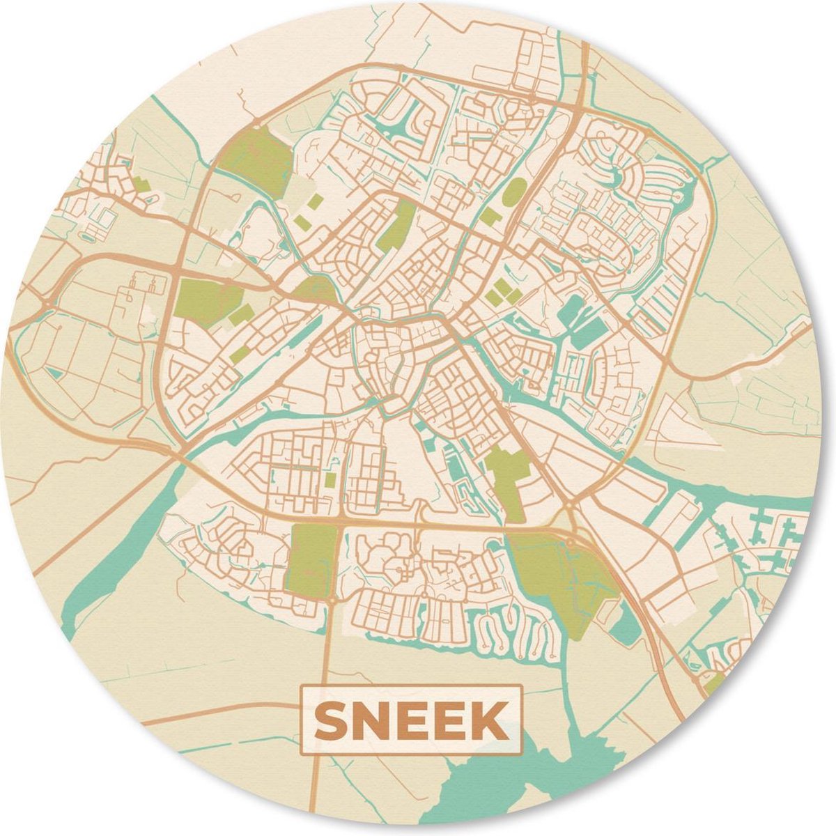 Muismat rond 30x30 cm - Mousepad Plattegrond - Sneek - Vintage - Ronde muismatten - Stadskaart