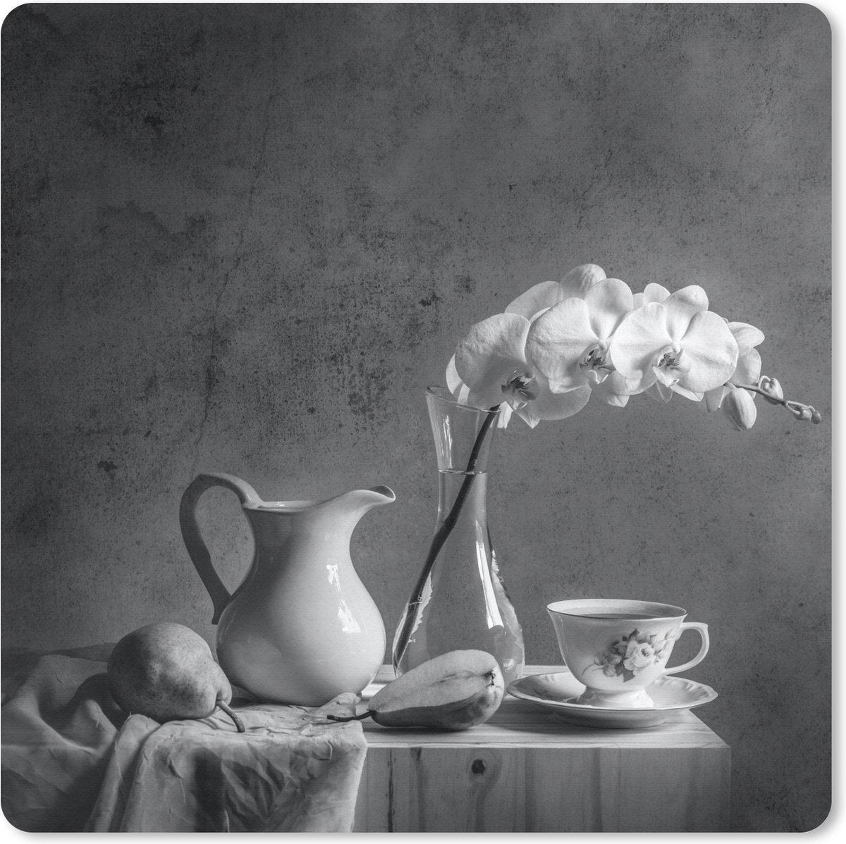 Muismat 30x30 cm - Mousepad Tafel - Stilleven - Zwart - Wit - Muismatten
