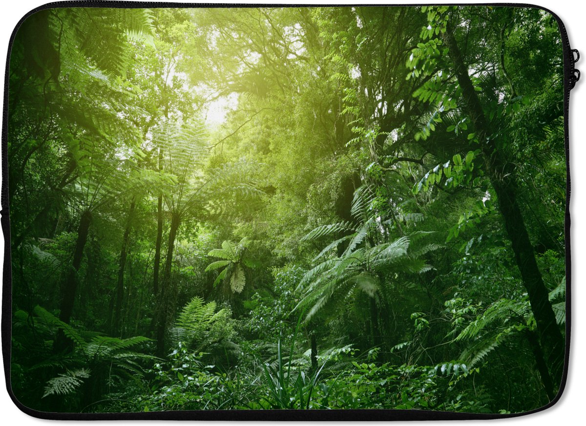 Laptophoes 14 inch - Jungle - Planten - Bladeren - Jongens - Meisjes - Kinderen - Laptop sleeve - Binnenmaat 33x23 cm - Zwarte achterkant