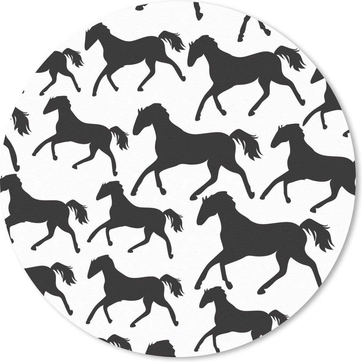 Muismat rond 30x30 cm - Mousepad Paarden - Zwart - Wit - Meisjes - Kinderen - Meiden - Ronde muismatten