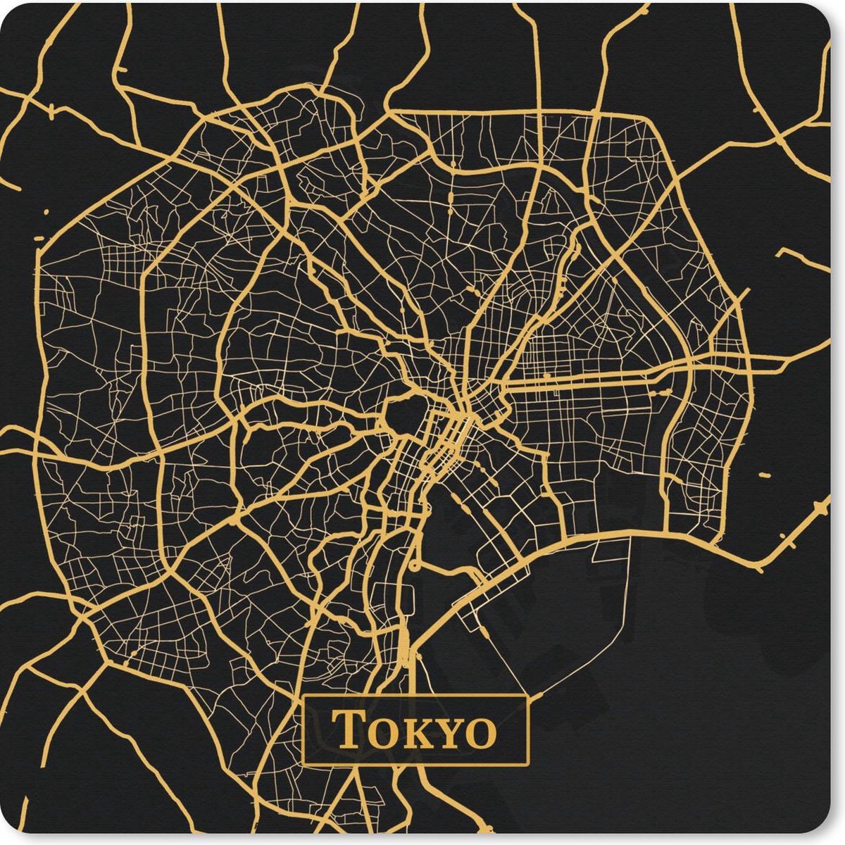 Muismat 30x30 cm - Mousepad Kaart - Tokyo - Goud - Zwart - Muismatten | RivalQuery | RivalQuery