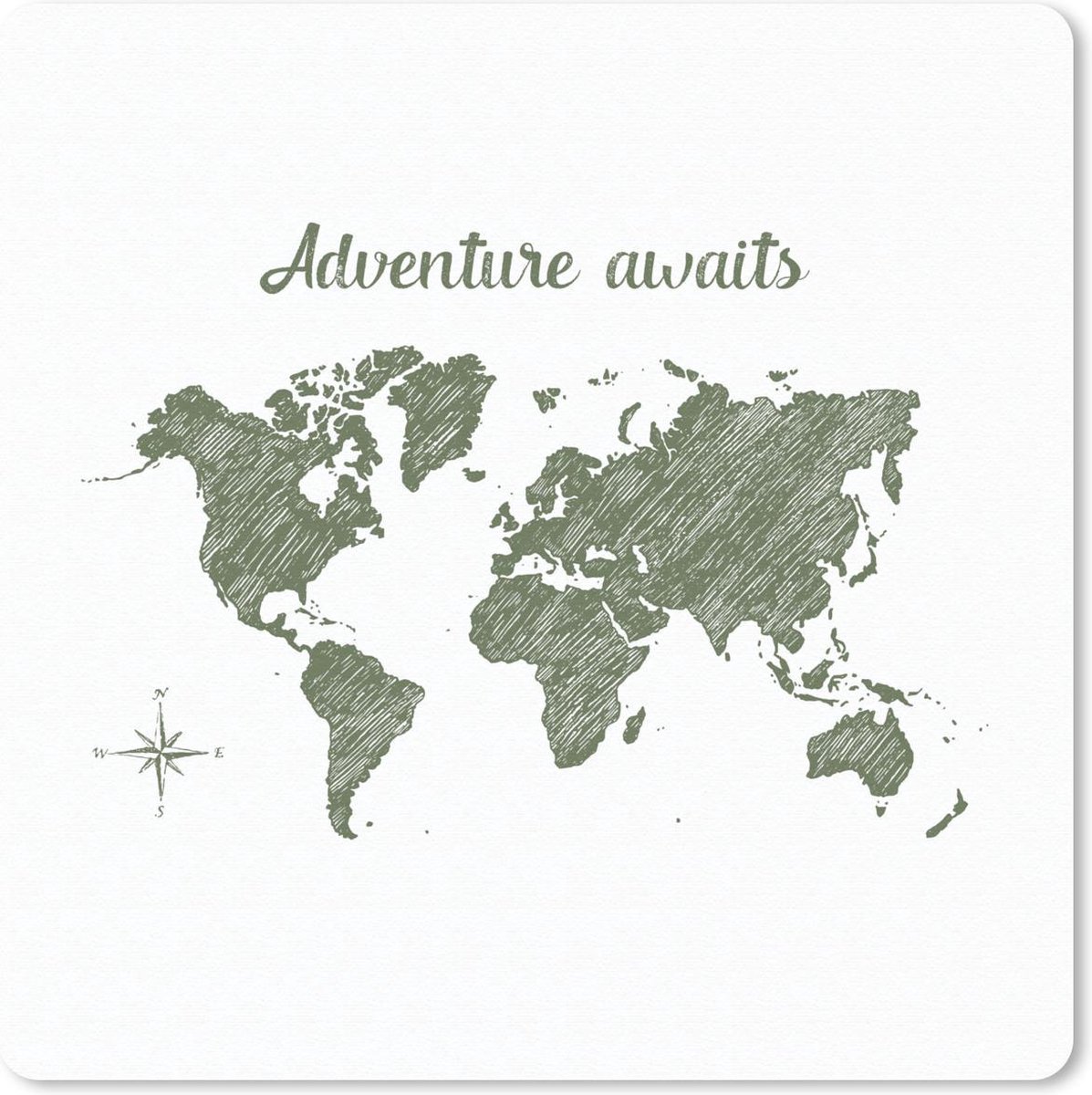 Muismat 30x30 cm - Mousepad Wereldkaart - Quote - Groen - Muismatten
