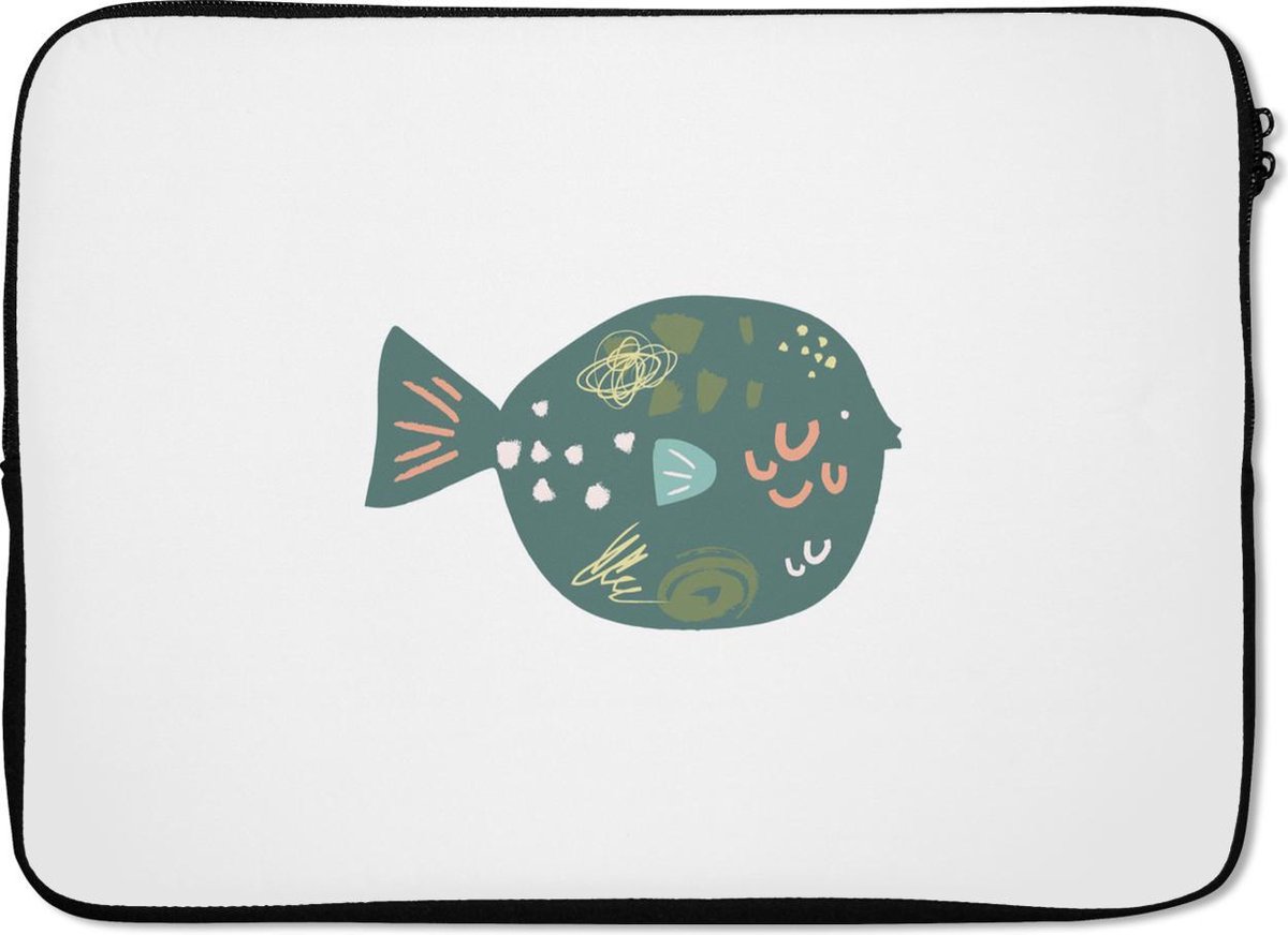 Laptophoes 14 inch - Vis - Groen - Pastel - Laptop sleeve - Binnenmaat 33x23 cm - Zwarte achterkant