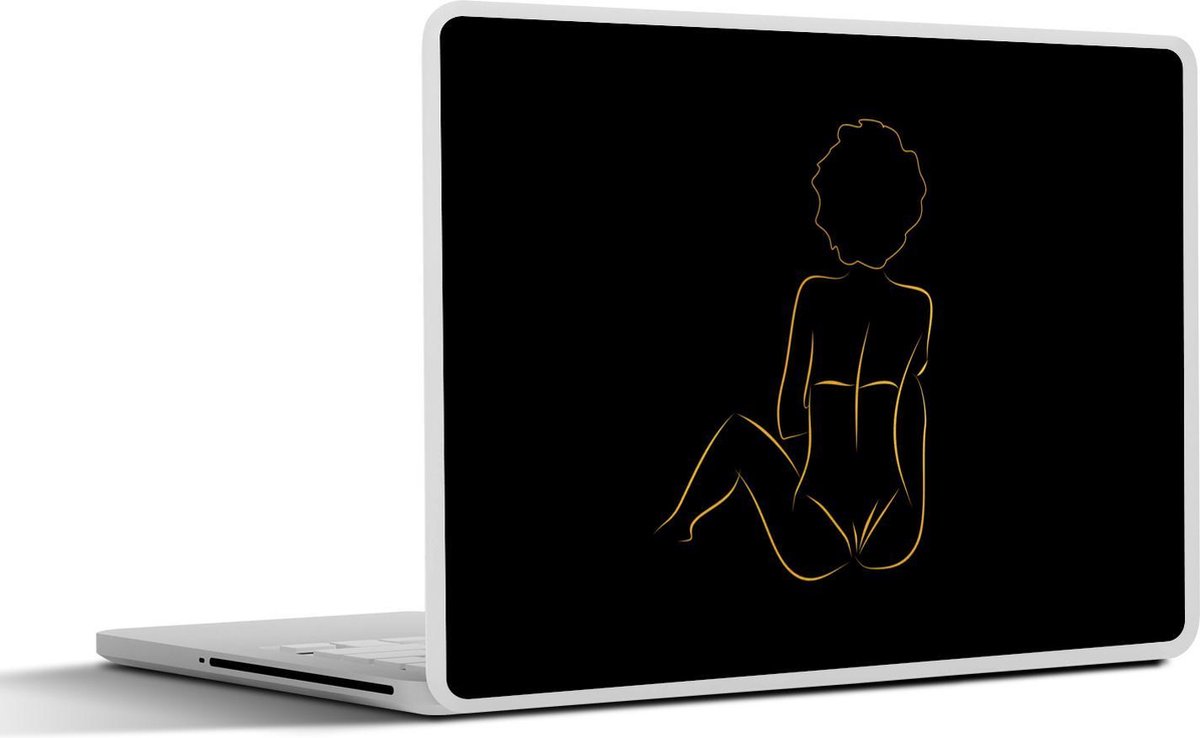Laptop sticker - 10.1 inch - Vrouw - Black - Gold - Line art - 25x18cm - Laptopstickers - Laptop skin - Cover | RivalQuery | RivalQuery