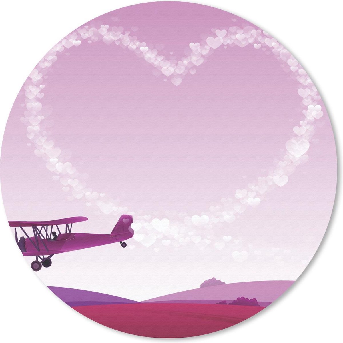Muismat rond 50x50 cm - Mousepad Een illustratie van een vliegtuig in een roze lucht - Ronde muismatten