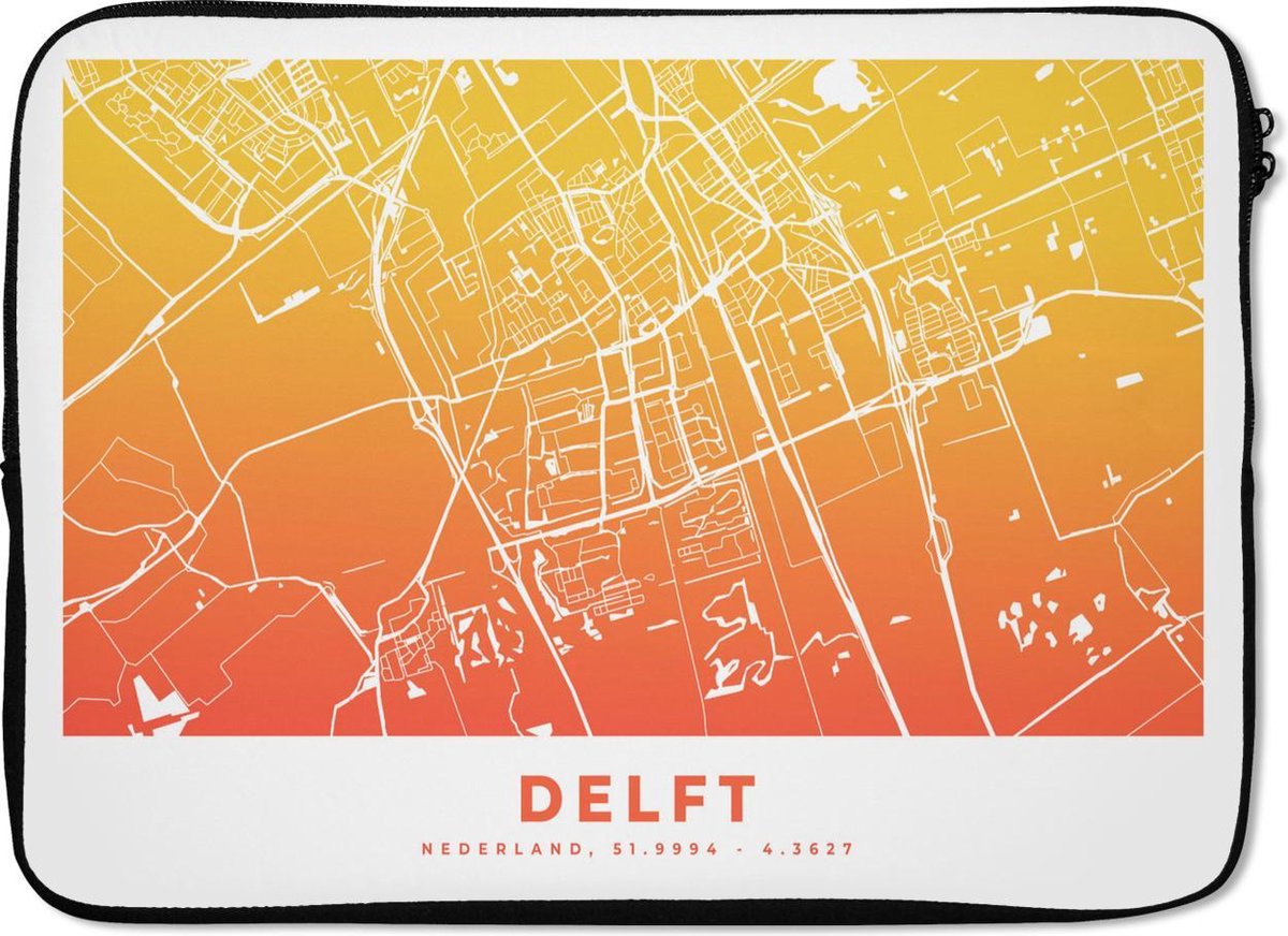 Laptophoes - Stadskaart - Delft - Geel - Laptopsleeve