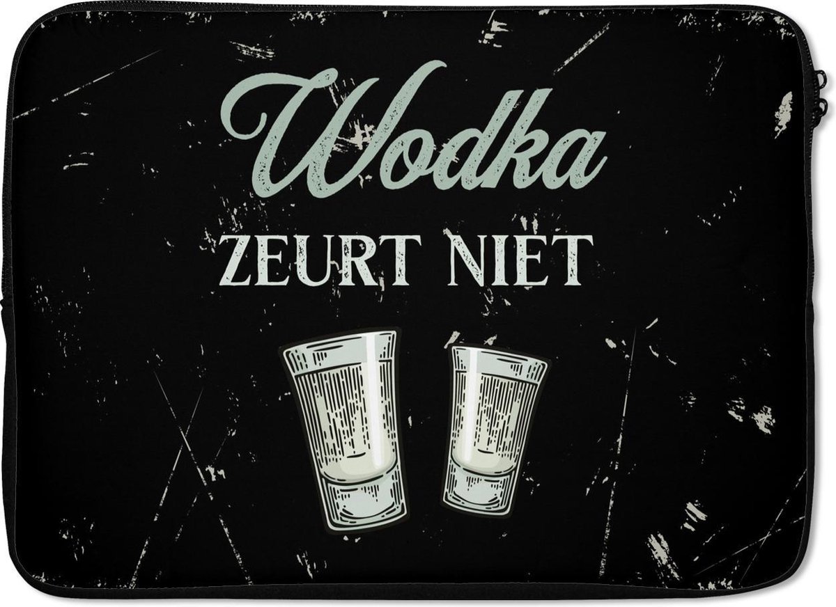 Laptophoes 14 inch - Wodka - Shotglaasjes - Spreuken Bordjes - Laptop sleeve - Binnenmaat 33x23 cm - Zwarte achterkant - Cadeau voor vrouw - Cadeau voor man