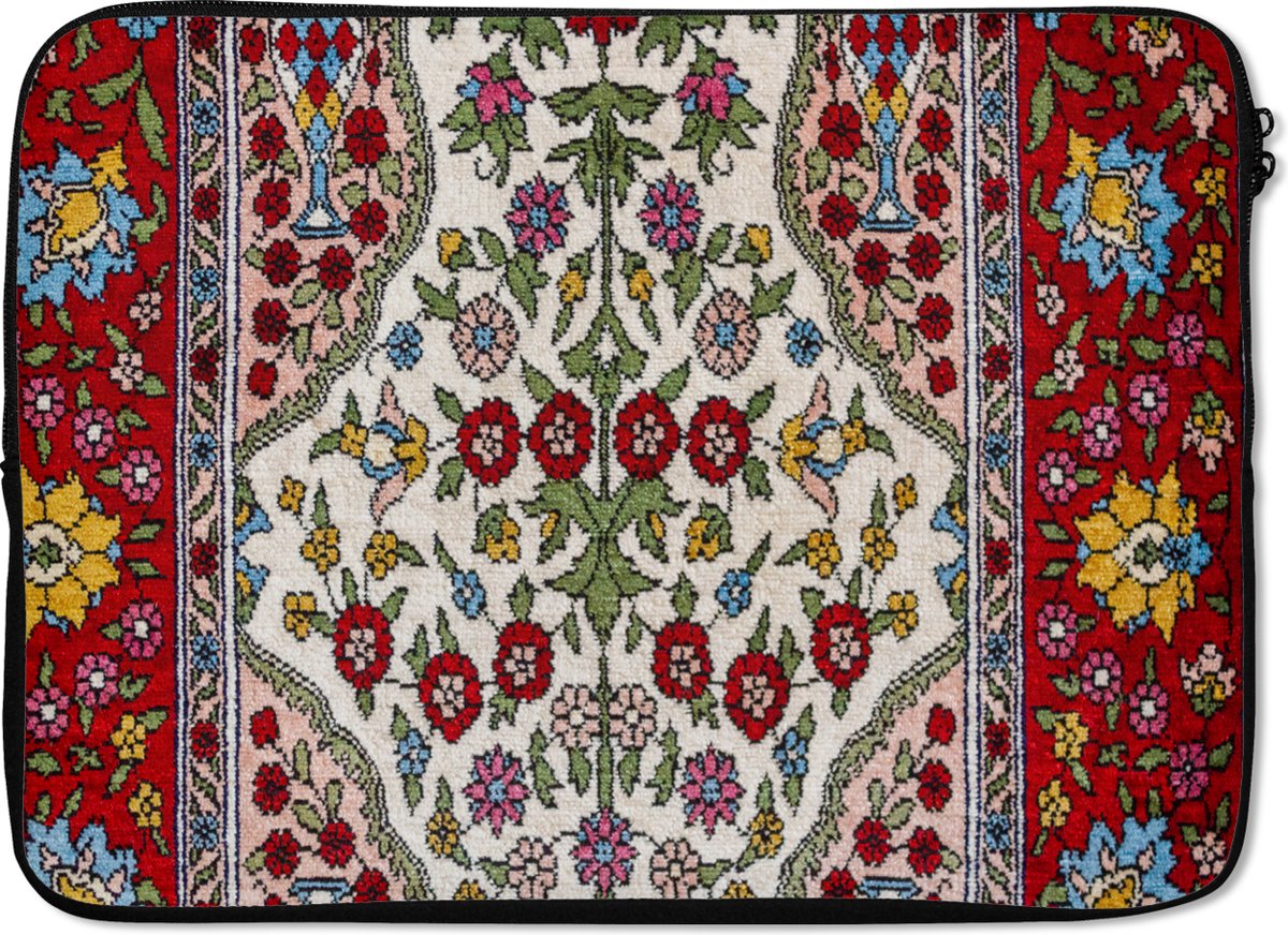 Laptophoes 14 inch - Perzisch Tapijt - Vloerkleed - Patronen - Kleuren - Laptop sleeve - Binnenmaat 33x23 cm - Zwarte achterkant | RivalQuery | RivalQuery