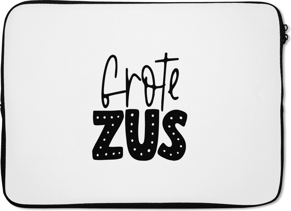 Laptophoes 14 inch - Zus - Grote zus - Quotes - Spreuken - Laptop sleeve - Binnenmaat 33x23 cm - Zwarte achterkant