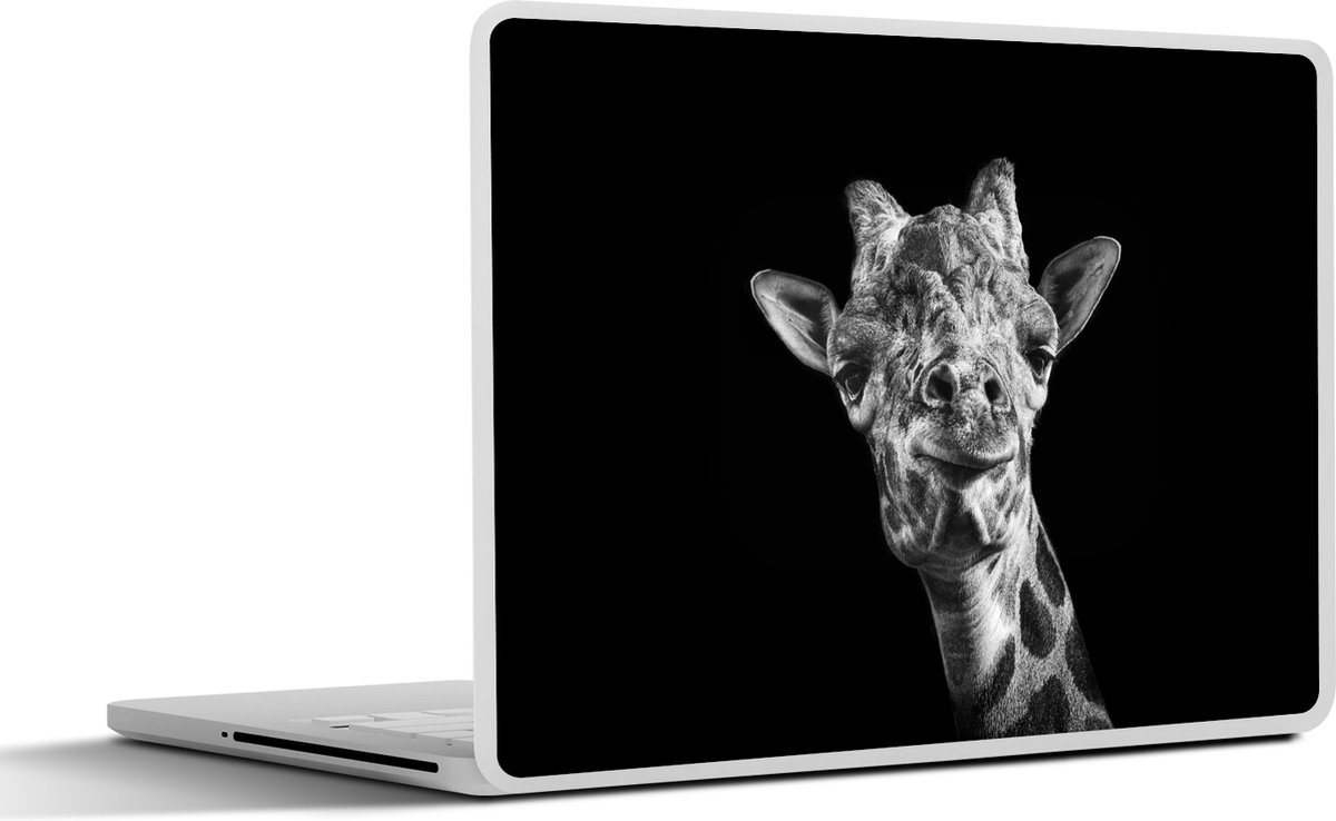 Laptop sticker - 12.3 inch - Giraf afgebeeld in zwart-wit weergegeven op een zwarte achtergrond - 30x22cm - Laptopstickers - Laptop skin - Cover | RivalQuery | RivalQuery