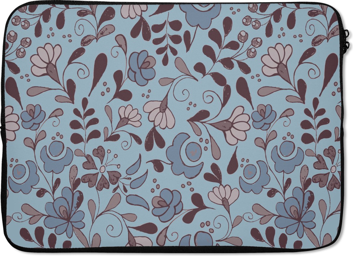 Laptophoes - Patroon - Bloem - Grijs - Blauw - Laptopsleeve