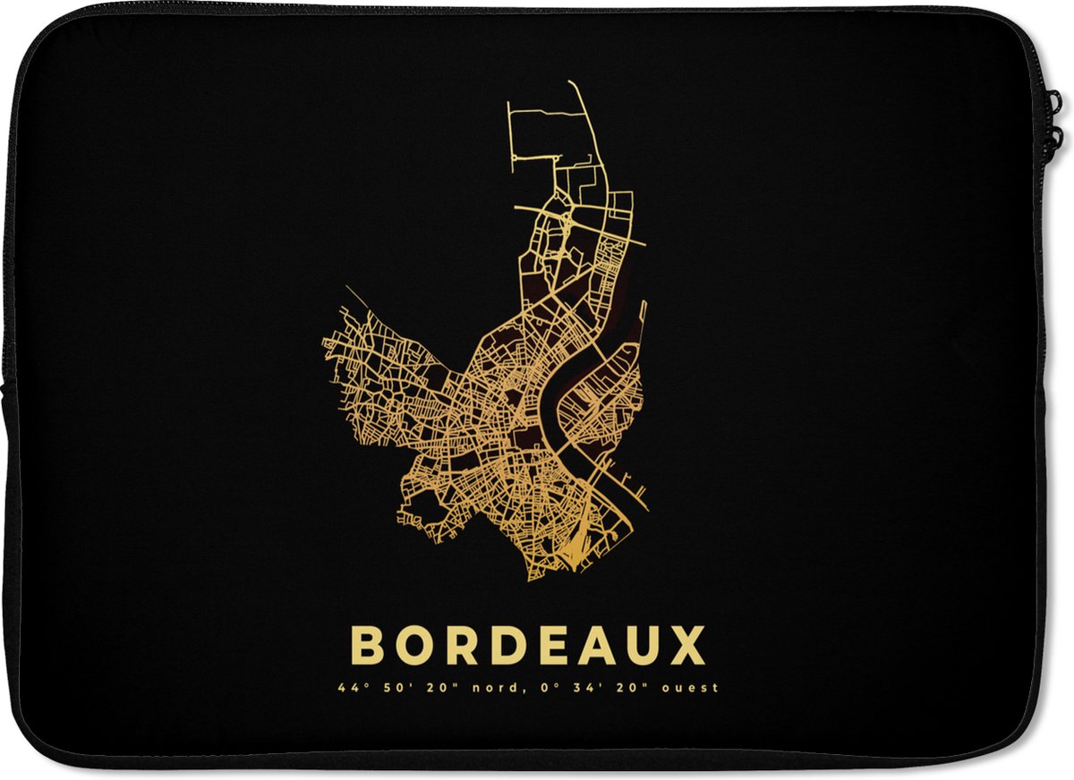 Laptophoes 14 inch - Plattegrond – Bordeaux - Frankrijk - Goud – Stadskaart - Kaart - Laptop sleeve - Binnenmaat 33x23 cm - Zwarte achterkant - Stadskaart | RivalQuery | RivalQuery