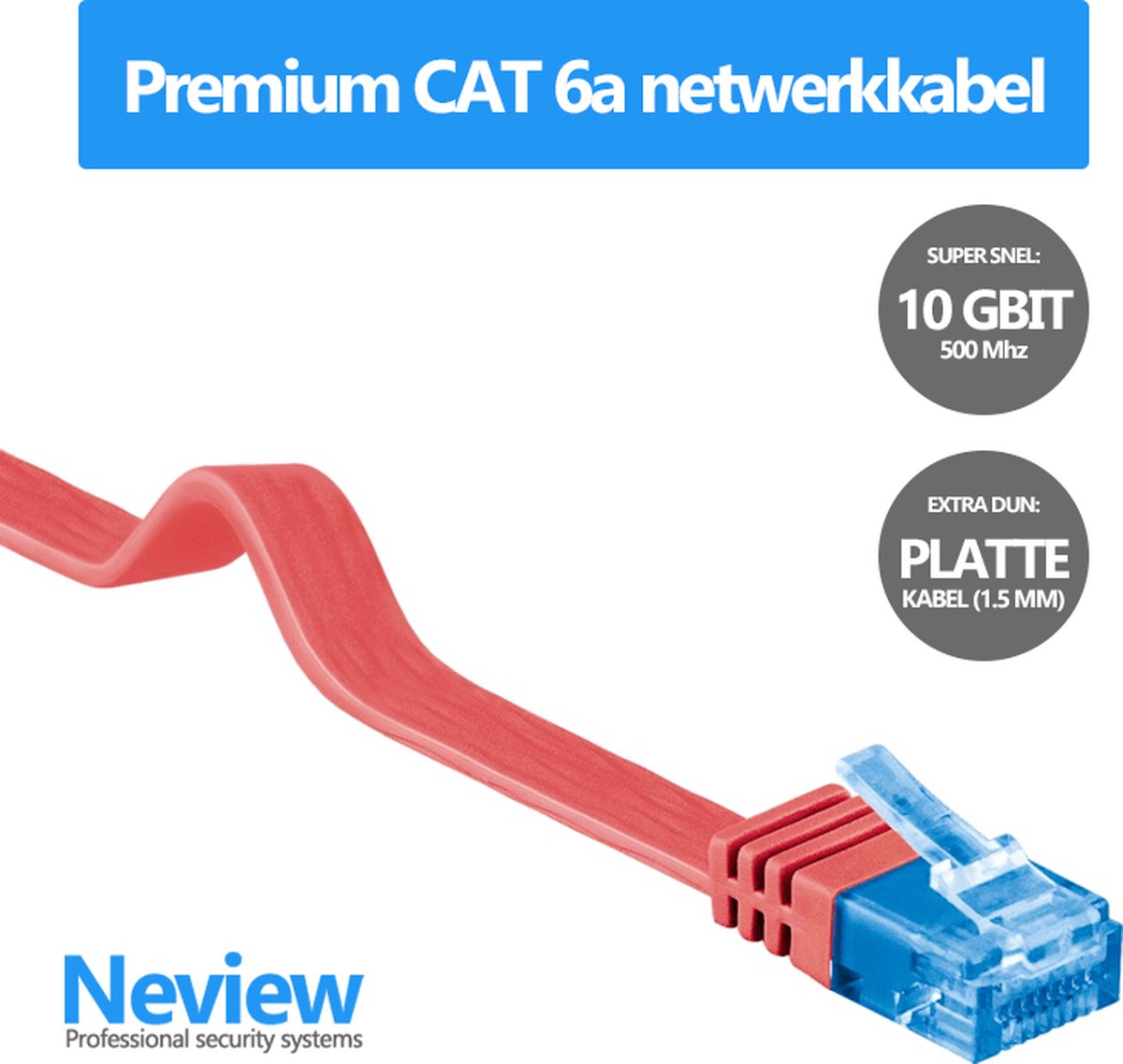 Voor wie echte kwaliteit, betrouwbaarheid en snelheid zoekt is er deze 3 meter lange platte CAT 6a netwerkkabel met een snelheid tot wel 10.000 Mbit (10 Gbit) per seconde! Deze Cat 6a kabel heeft, net als de standaard internetkabels, een normale netwerkstekker zodat je hem ook gewoon kunt gebruiken bij je computer of modem.