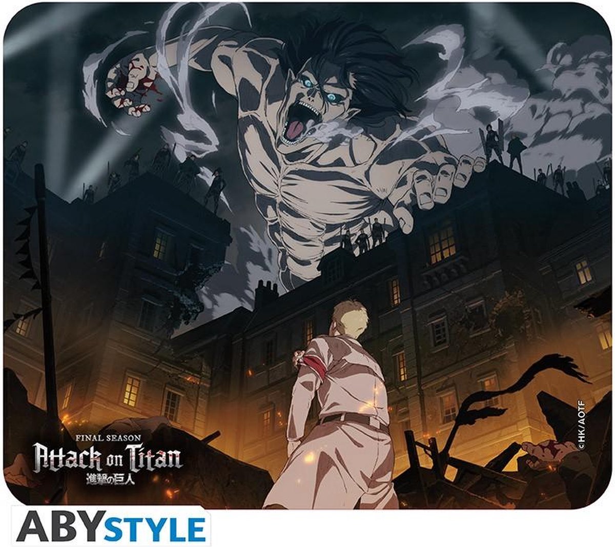 Eren en Paradise Island hebben het offensief op Mahr gelanceerd! Kunnen Reiner en de Mahr Warrior-eenheid het opnemen tegen Erens Titan Assassin en de wapens van het verkenningsbataljon? Beleef de nieuwste avonturen van je favoriete personages in het laatste seizoen van Attack of the Titans met deze muismat van ABYstyle!