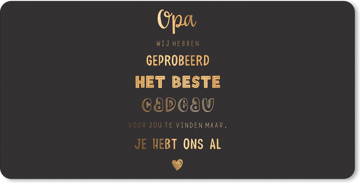 Muismat XXL 90x45 cm - Bureau onderlegger - Bureau mat Vaderdag geschenk - Quote - Spreuken - Opa - Het beste cadeau - Bureaumat - Gaming mousepad xl - Bureaulegger groot - Computer deskmat