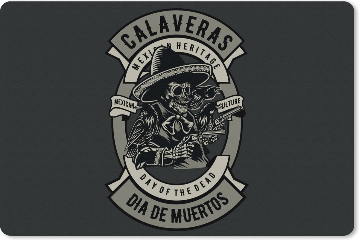 Muismat XXL 120x80 cm - Bureau onderlegger - Bureau mat Skelet - Pistool - Retro - Bureaumat - Gaming mousepad xl - Bureaulegger groot - Computer deskmat