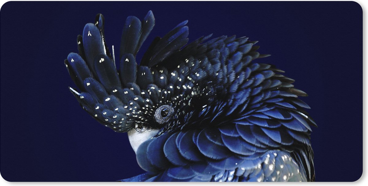Muismat XXL 80x40 cm - Bureau onderlegger - Bureau mat Blauw gekleurde kaketoe met een donkere achtergrond - Bureaumat - Gaming mousepad xl - Bureaulegger groot - Computer deskmat