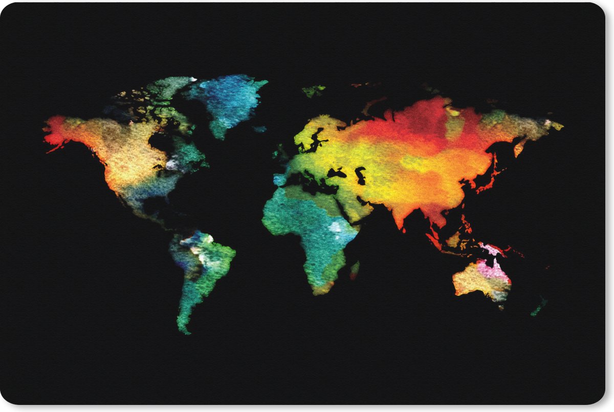 Muismat XXL 120x80 cm - Bureau onderlegger - Bureau mat Wereldkaart - Waterverf - Kleuren - Bureaumat - Gaming mousepad xl - Bureaulegger groot - Computer deskmat