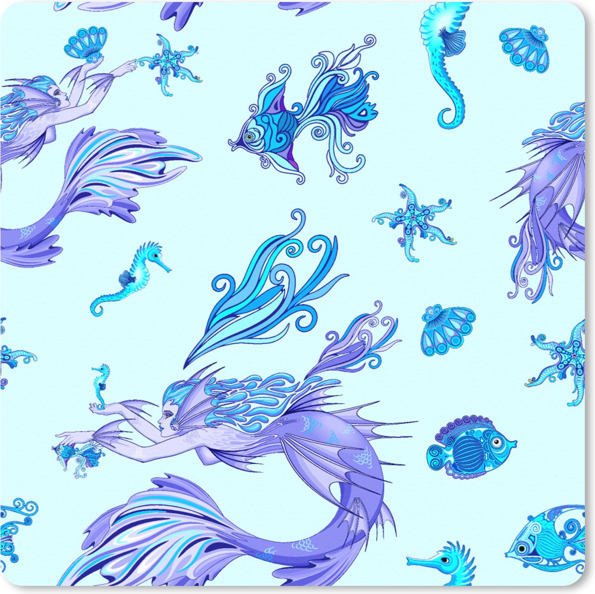 Muismat XXL 40x40 cm - Bureau onderlegger - Bureau mat Patronen - Vis - Zeemeermin - Mermaid - Bureaumat - Gaming mousepad xl - Bureaulegger groot - Computer deskmat | RivalQuery | RivalQuery