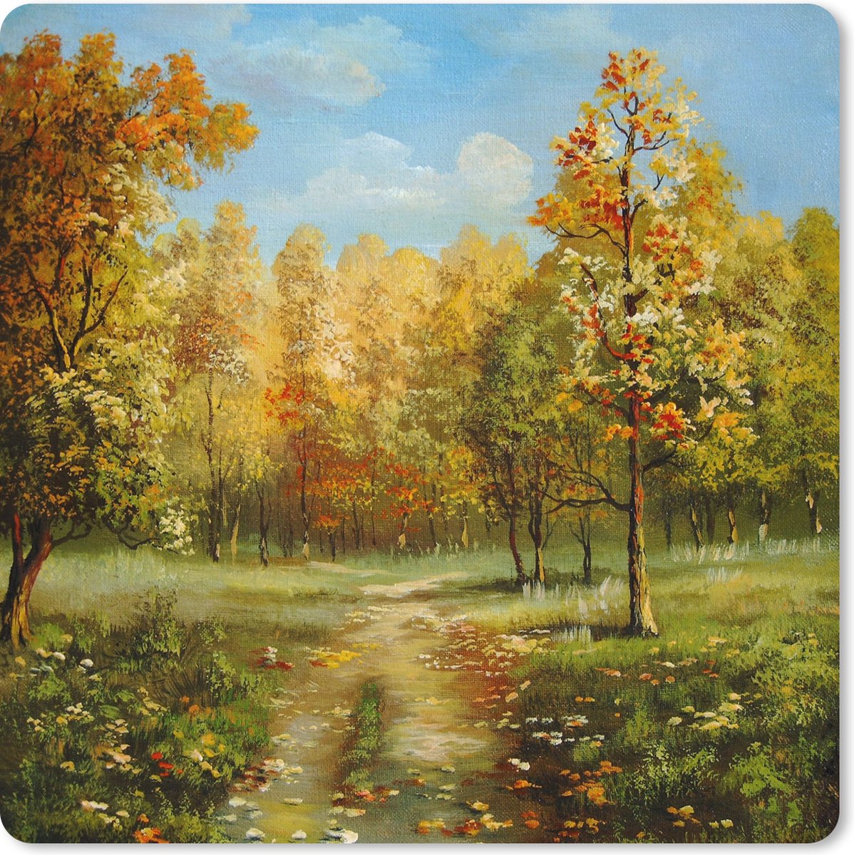 Muismat XXL 50x50 cm - Bureau onderlegger - Bureau mat Een illustratie van herfstachtige bomen in een bos - Bureaumat - Gaming mousepad xl - Bureaulegger groot - Computer deskmat