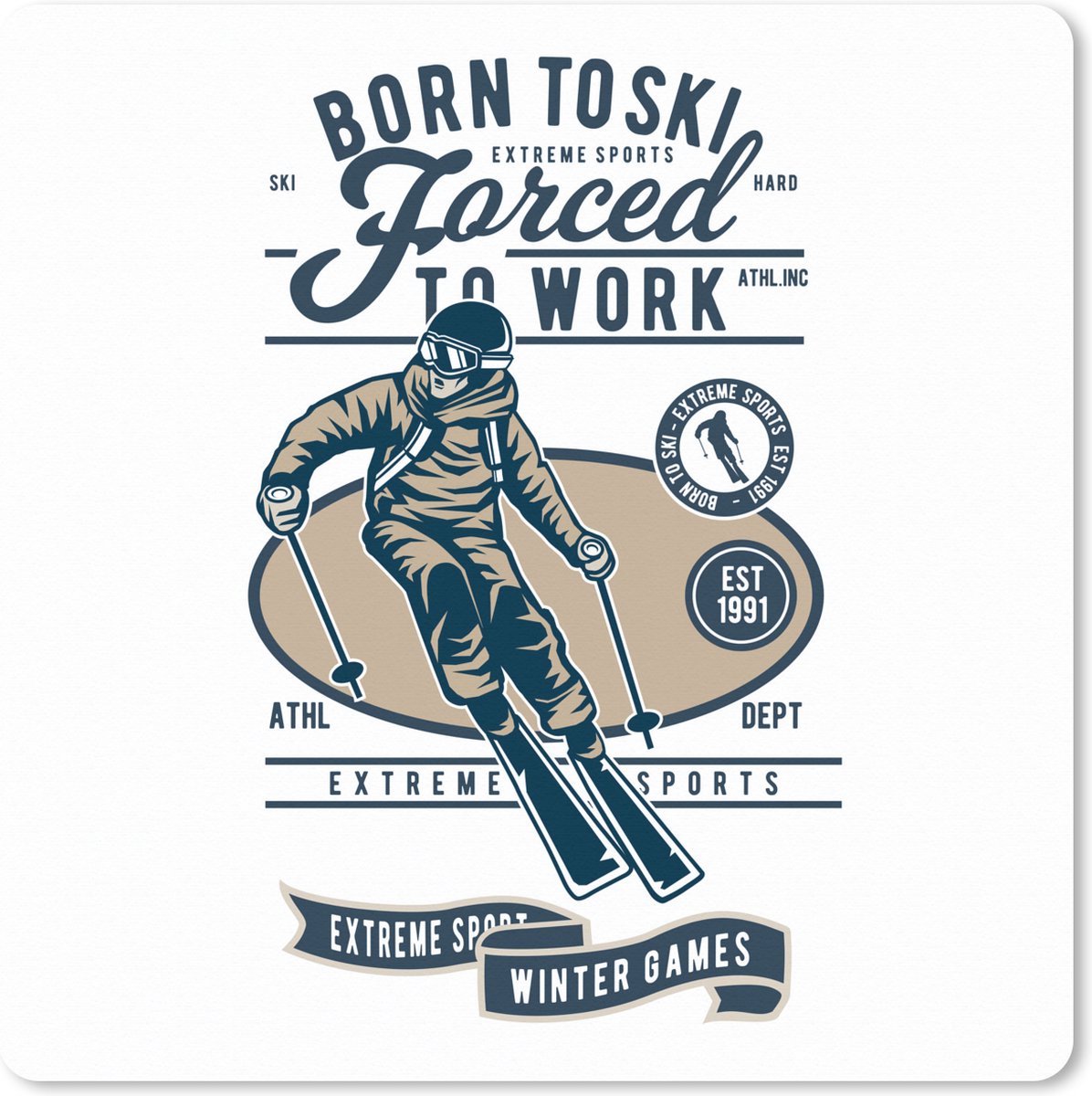 Muismat XXL 50x50 cm - Bureau onderlegger - Bureau mat Ski - Wintersport - Vintage - Bureaumat - Gaming mousepad xl - Bureaulegger groot - Computer deskmat | RivalQuery | RivalQuery