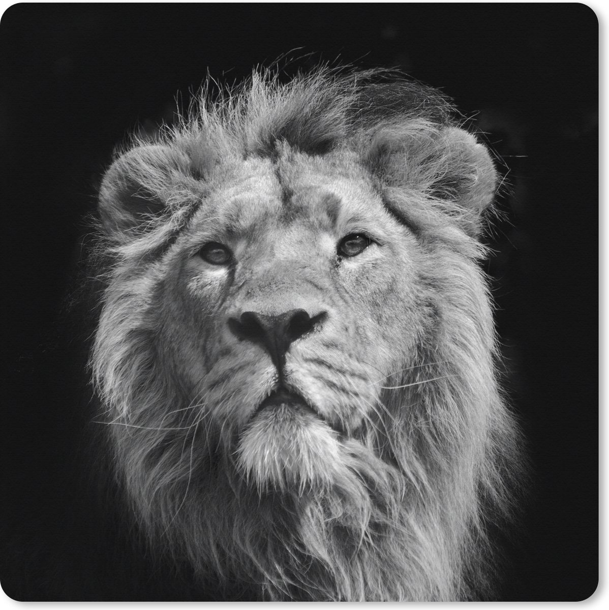 Muismat XXL 80x80 cm - Bureau onderlegger - Bureau mat Aziatische leeuw tegen zwarte achtergrond in zwart-wit - Bureaumat - Gaming mousepad xl - Bureaulegger groot - Computer deskmat