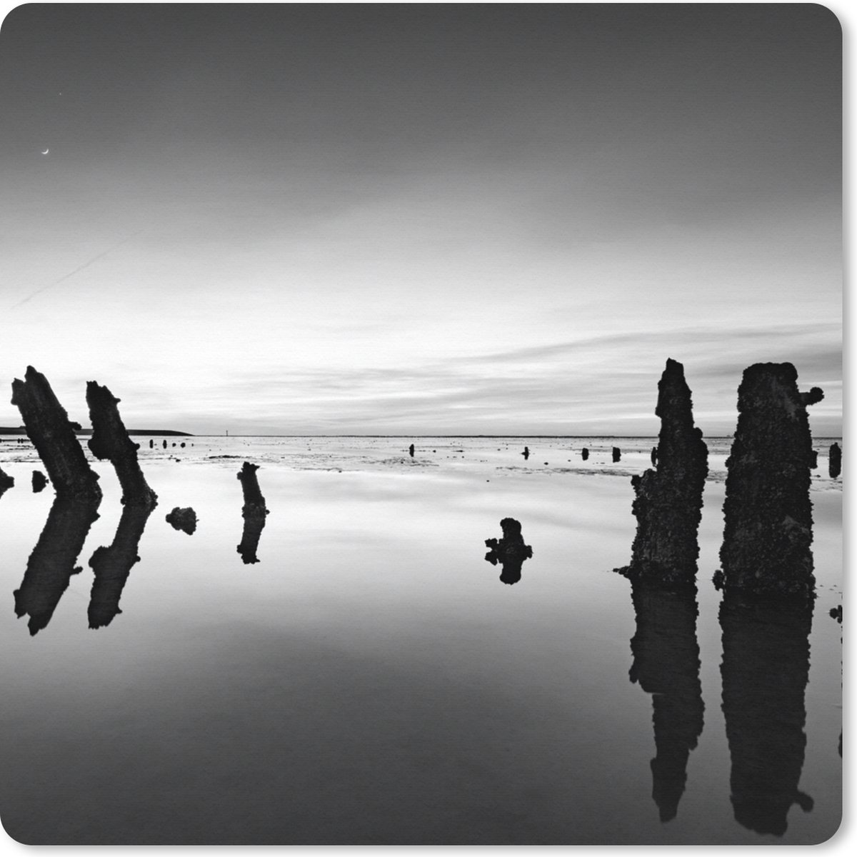 Muismat XXL 60x60 cm - Bureau onderlegger - Bureau mat Waddenzee - Zwart - Wit - Hout - Bureaumat - Gaming mousepad xl - Bureaulegger groot - Computer deskmat