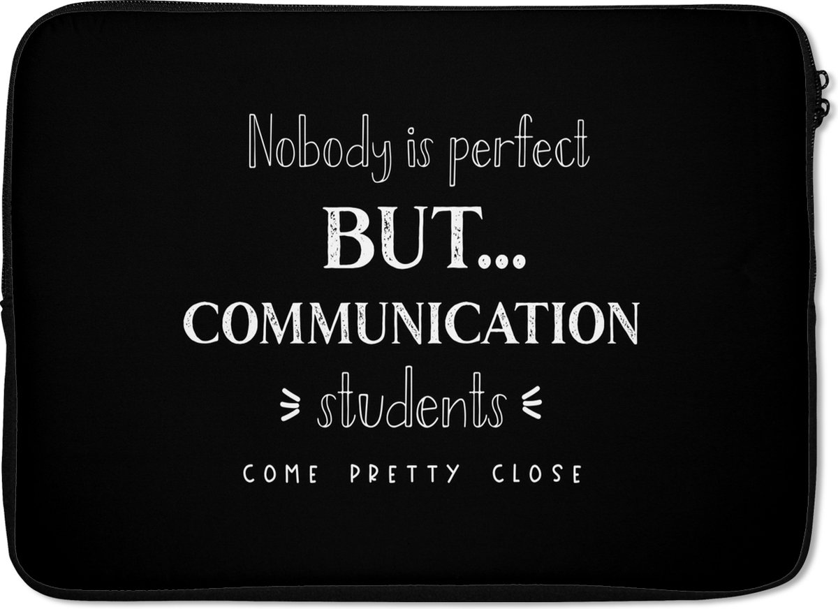 Laptophoes 14 inch - Quote - Studenten - Communication - Laptop sleeve - Binnenmaat 33x23 cm - Zwarte achterkant