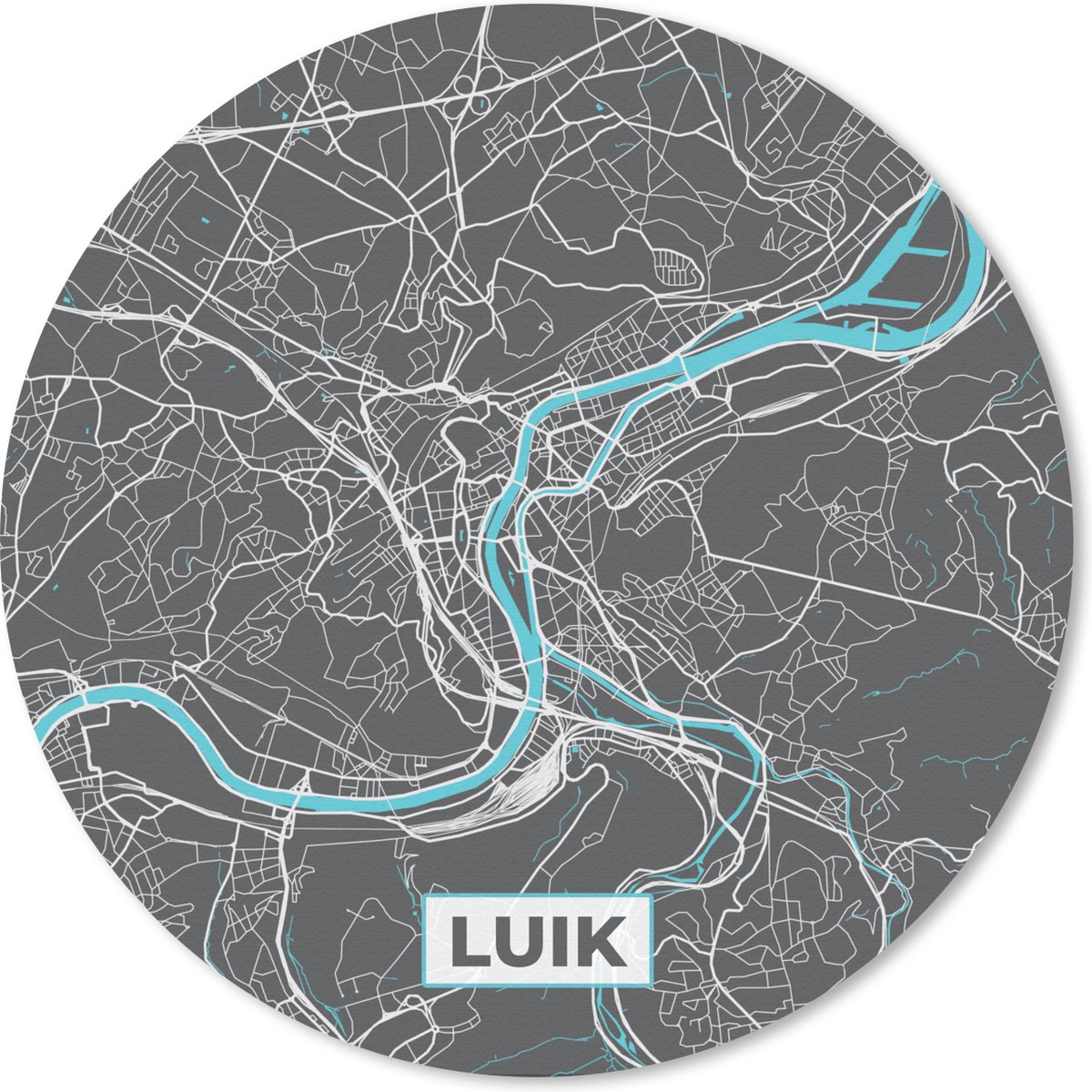 Muismat rond 50x50 cm - Mousepad België – Luik – Stadskaart – Kaart – Blauw – Plattegrond - Ronde muismatten - Stadskaart