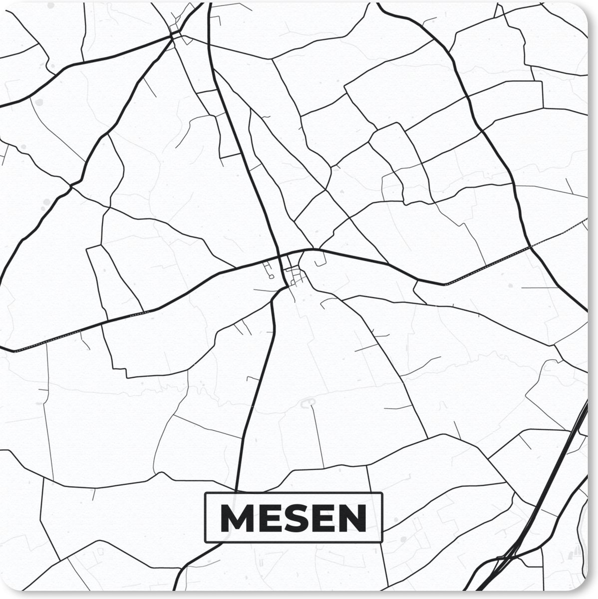Muismat 30x30 cm - Mousepad Plattegrond – Mesen – Zwart Wit – Stadskaart - Kaart - België - Muismatten - Stadskaart