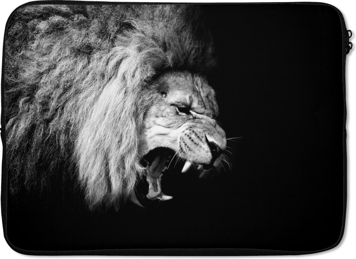 Laptophoes - Leeuw - Portret - zwart - Wit - Dieren - Laptopsleeve