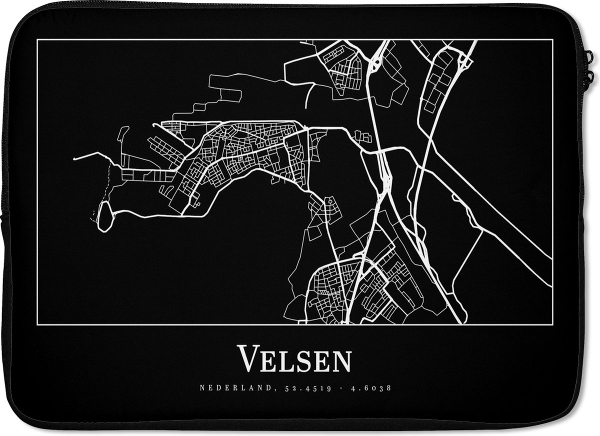 Laptophoes 14 inch - Velsen - Stadskaart - Kaart - Plattegrond - Laptop sleeve - Binnenmaat 33x23 cm - Zwarte achterkant - Stadskaart