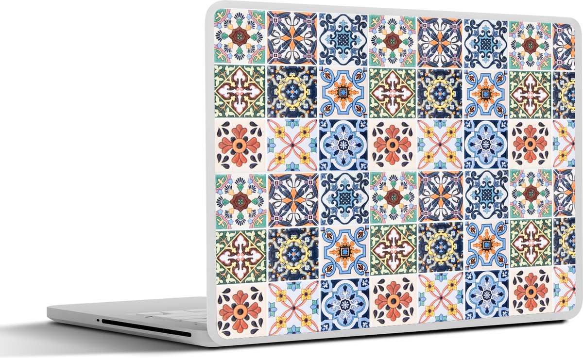 Laptop sticker - 10.1 inch - Design - Bloemen - Oranje - Blauw - Abstract - 25x18cm - Laptopstickers - Laptop skin - Cover