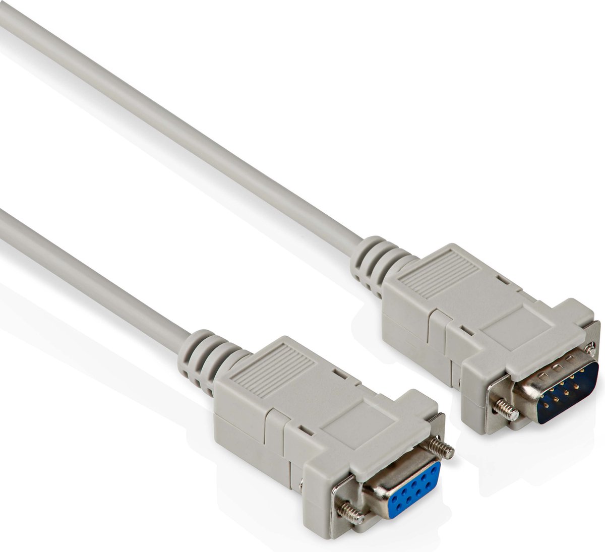 De kabel is grijs van kleur en heeft aan de ene kant een 9-polige serieel male aansluiting en aan de andere kant een 9-polige serieel female aansluiting. Deze aansluitingen zijn standaard en worden veel gebruikt in de industrie en bijvoorbeeld in de IT-sector. De kabel is goed afgeschermd, wat zorgt voor een betrouwbare en storingsvrije overdracht van gegevens tussen apparaten. De kabel is ook zeer flexibel, waardoor deze gemakkelijk te installeren en te gebruiken is. Garantie bedraagt 5 jaar.
