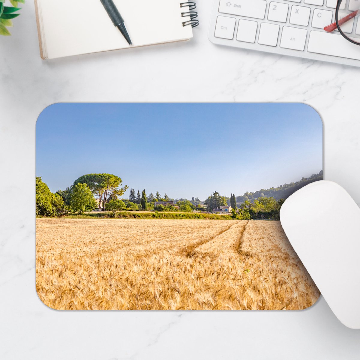 Muismat - Droog Graanlandschap onder Stralend Blauwe Lucht - 25x18 cm - 2 mm Dik - Muismat van Vinyl | RivalQuery | RivalQuery