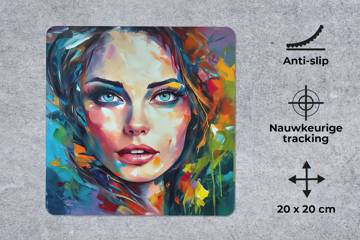 Muismat 20x20 cm - Mousepad Gezicht - Vrouw - Olieverf - Kleurrijk - Kunst - Muismatten